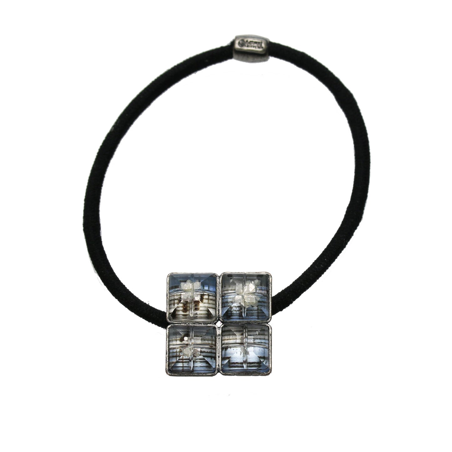 『音符シリーズ(ブルー)』の四角い樹脂パーツを使ったおしゃれなヘアゴムです。表面の個性的なカットが透明感を一層引き立てます。上品な落ち着いた色合いも魅力です。無造作にまとめるだけでも後ろ姿が素敵になります。ヘアスタイルの個性的なアクセントにどうぞ。年齢、性別を問わないデザインです。贈り物にも人気の大人向け高級ヘアアクセサリーです。
