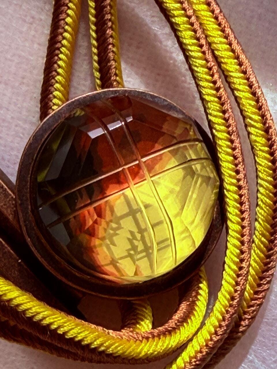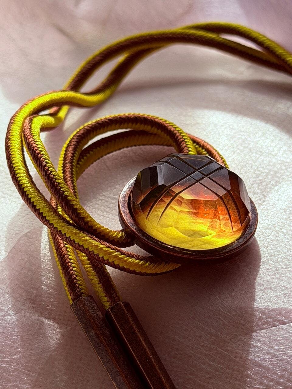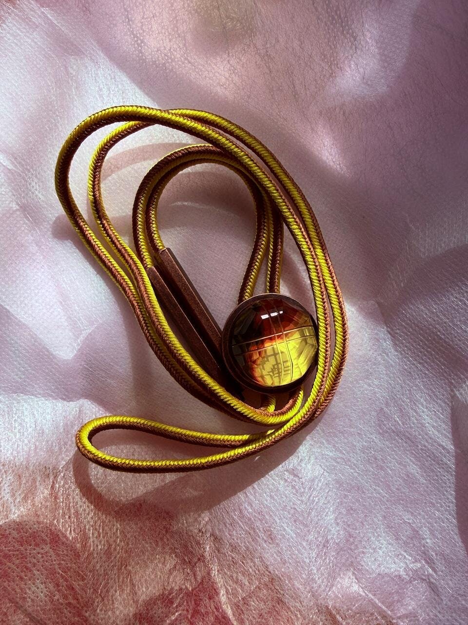組紐ループタイ 三毛猫 黄 茶 黒 正絹